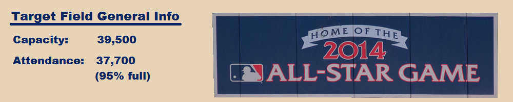 Unfortunately at Target Field, there really is no play area for younger kids as we've found at many of the new ballparks. There are some baseball glove statues OUTSIDE the stadium, which we found to be very popular with school groups as they wait to get into Target Field. For those into video games, there is a Best Buy Gaming Zone near section 225 - near the left field corner - where the latest baseball-related video games are available for play.